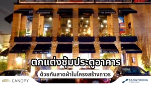 ตกแต่งซุ้มประตูอาคาร ด้วยกันสาดผ้าใบโครงสร้างถาวร