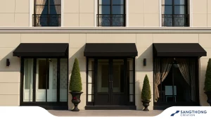 ถูกผลิตขึ้นอย่างพิถีพิถันตั้งแต่โครงสร้าง จนถึงการตัดเย็บผ้าใบให้เข้ารูปตามรูปทางที่ต้องการ และมีให้เลือกหลากหลายถึง 12 แบบ โดยมีขั้นตอนการตัดเย็บผ้าใบให้มีความปราณีต สวยงาม ตามมาตรฐาน SANGTHONG โดยเลือกชายผ้าได้ถึง 6 แบบ และสามารถสกรีนโลโก้ลงบนผ้าใบได้ เหมาะสำหรับกันแดด กันฝน และยังเสริมความภูมิฐานงานออกแบบให้กับอาคาร อีกทังยังมีรูปทรงให้เลือกอีกหลากหลายประเภท