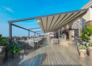Ipergo PVC Rectractable roof หลังคาผ้าใบพับได้ ยืดหยุ่น ดีไซน์สวย ใช้งานได้ทุกฤดูกาล เพิ่มความสะดวกสบายและความสวยงามให้พื้นที่กลางแจ้งด้วย หลังคาผ้าใบเปิดปิดได้ ระบบมอเตอร์ควบคุมด้วยรีโมท เพียงกดปุ่มก็สามารถเปิดรับลมธรรมชาติหรือปิดเพื่อกันแดดกันฝนได้ทันที วัสดุผ้าใบพีวีซีเกรดพรีเมียมป้องกันน้ำและรังสี UV ได้ 100% ทำให้ใช้งานได้อย่างมั่นใจในทุกสภาพอากาศ